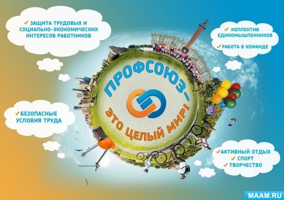 Педагогов собрал под единым крылом Ради лучших условий сейчас, не потом! Основная задача – права защищать, Финансируя деньги, в беде поддержать. Содействует он и в охране труда Отдых, лечение оплатит всегда. Юристов поддержку окажет подчас, Зарплат повышения добьётся для нас!