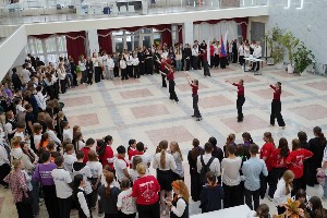 Участники областного сетевого проекта «Уральская академия лидерства» из детских объединений школ №69 и №90 выступили с флеш-мобом, приглашающем всех принять участие в проекте. Здесь лучшие участники удостаиваются Премии Губернатора Свердловской области.