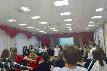 После построения и исполнения Гимна Российской Федерации объединенные команды школ прошли семь площадок квеста по направлениям развития лидерства и социальной активности: