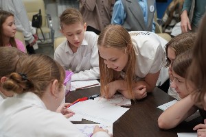 Проектный интенсив: в группах работали над важным шагом к формированию единой концепции и понимания целей – созданием карты ценностей сообщества активистов школьного самоуправления. Ответственность, сотрудничество, уважение, честность, поддержка, гражданская активность, понимание, продуктивность, командная работа, сплоченность, доверие, доброта – именно такие звезды после обсуждения и презентации работы расположились на интеллект-карте ценностей детского экспертного сообщества.